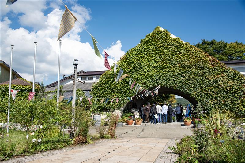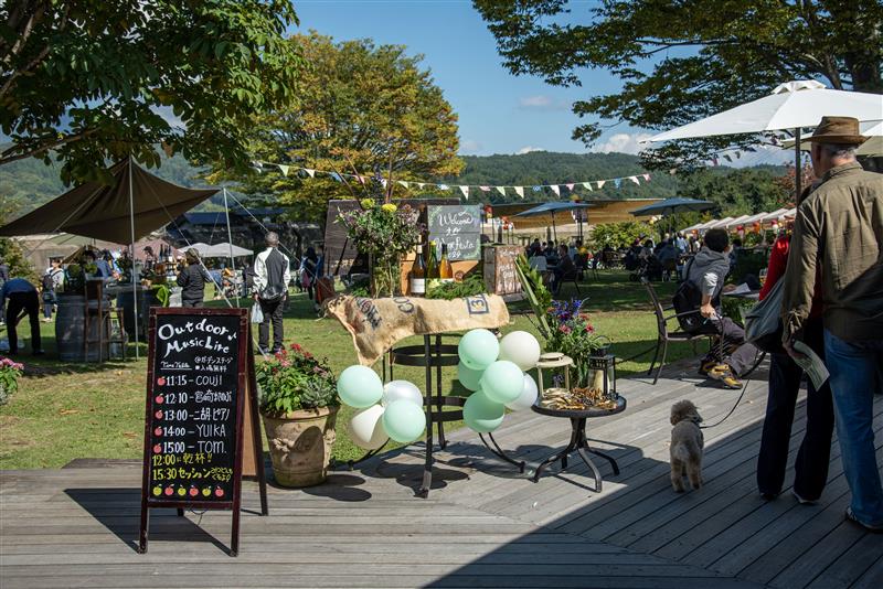 ガーデンには、りんごやぶどうなどの秋の恵み、クラフトが並ぶマルシェもオープン。